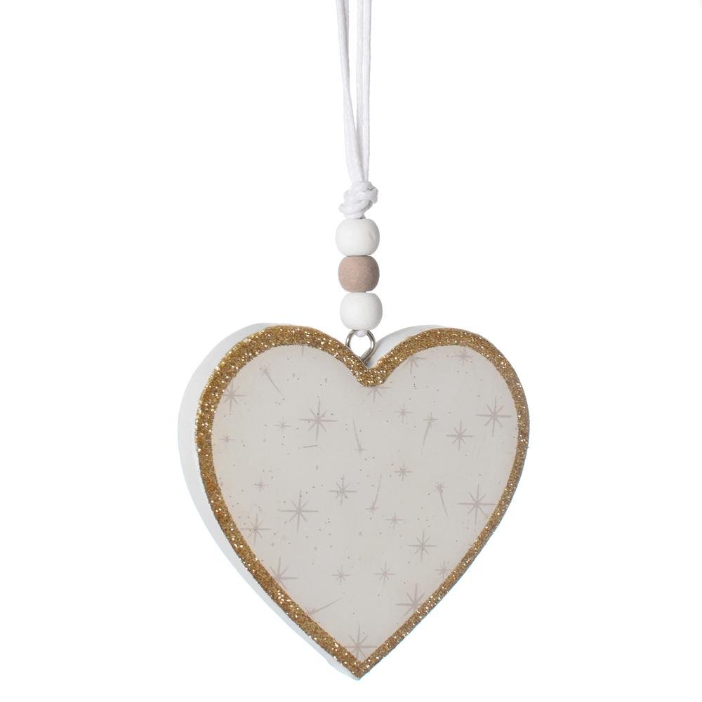 Dekorácia Záves srdce drevo natur/biela 8,5x8,5x1,3cm
