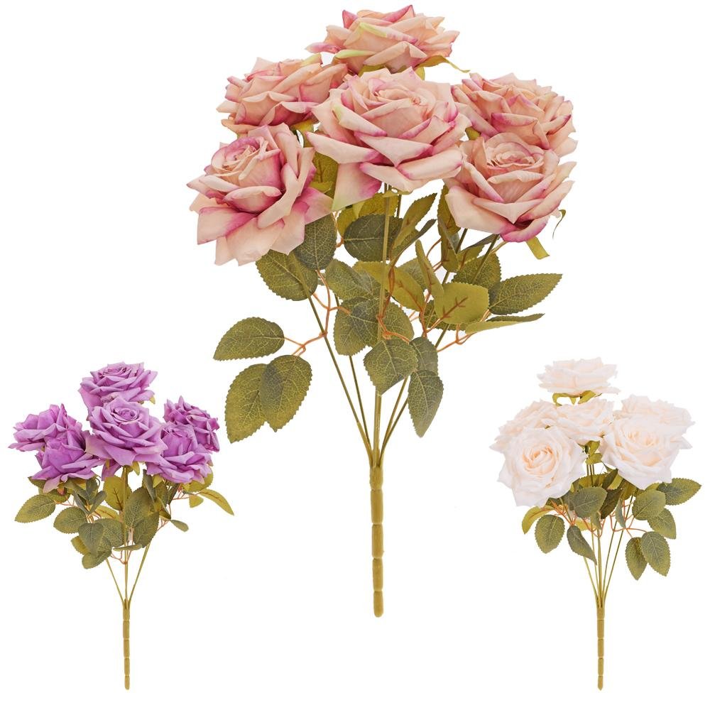 Dekorácia Kytica ruža x7 43cm mix 3f
