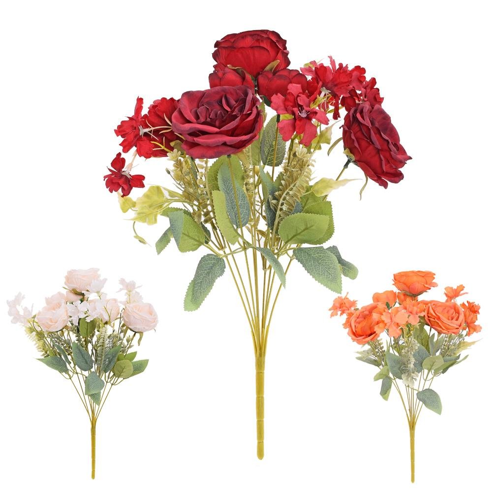Dekorácia Kytica ruža x9 45cm mix 3f