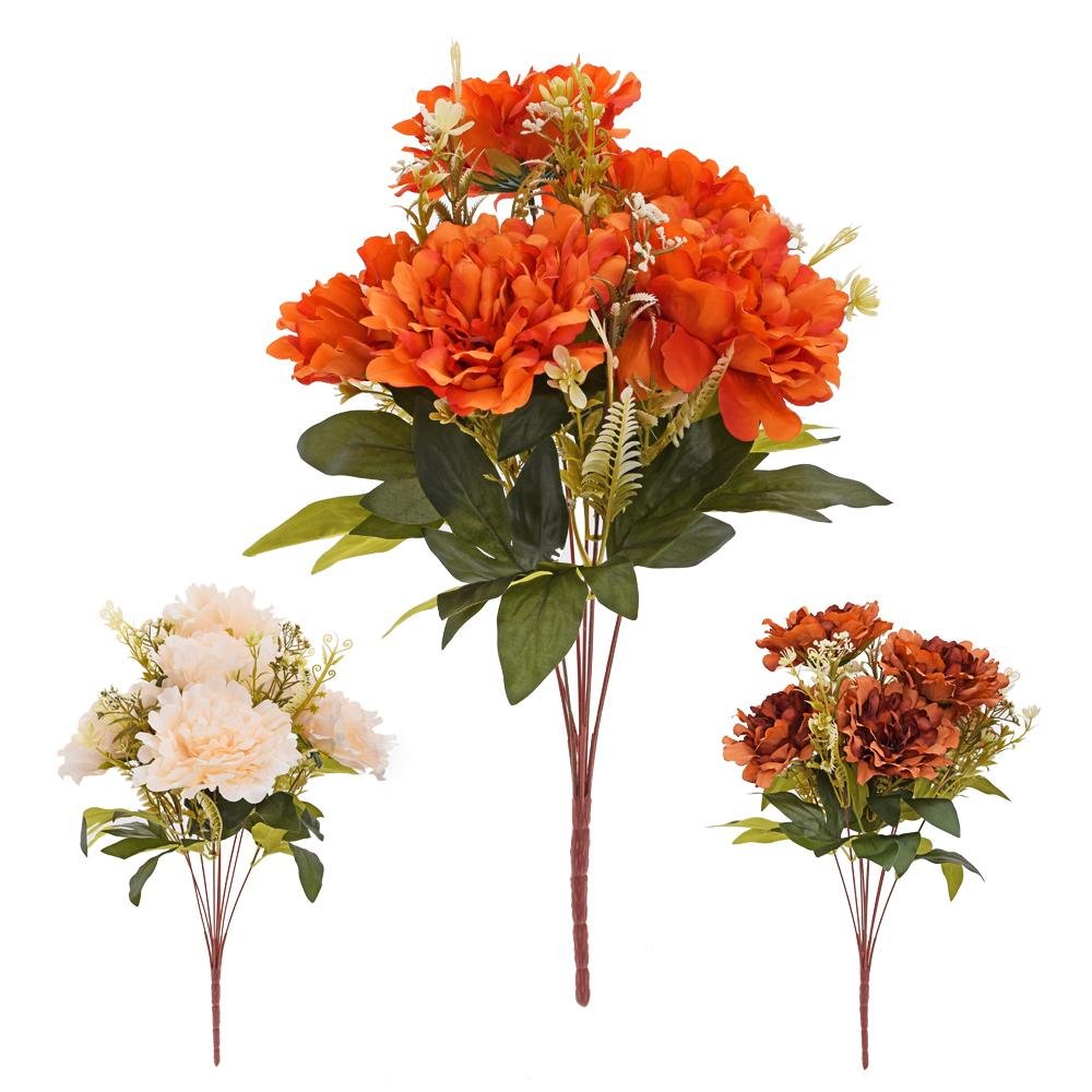 Dekorácia Kytica pivonka, zeleň mix/3f 48cm