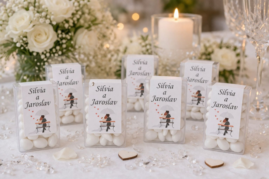 Možnosť upraviť do prevedenia menovka, t.j. každé jedno balenie bude s unikátnym menom svadobčana.