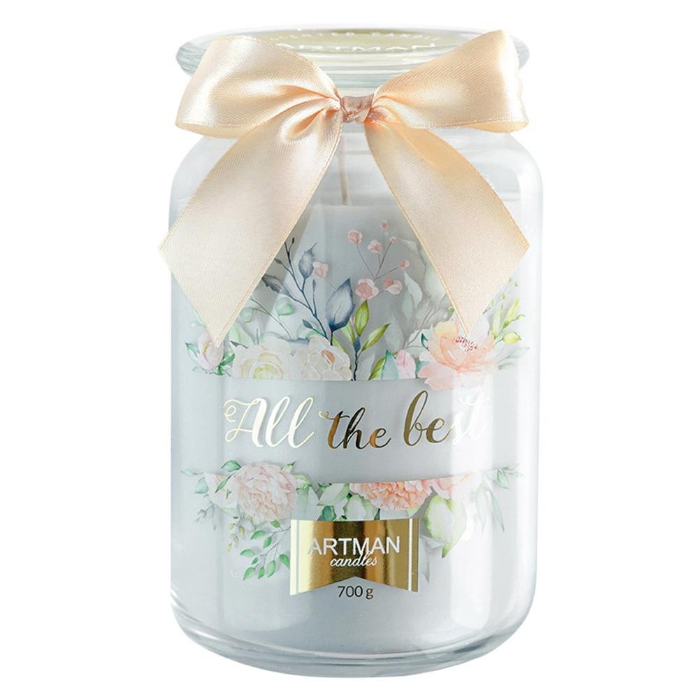 Dekorácia Voň.v skle celoročná veľ.sivá 700gr