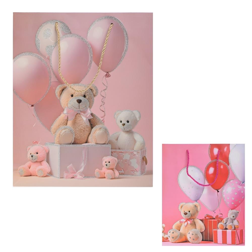 Dekorácia Darčeková taška m 26x32cm macko s balónmi