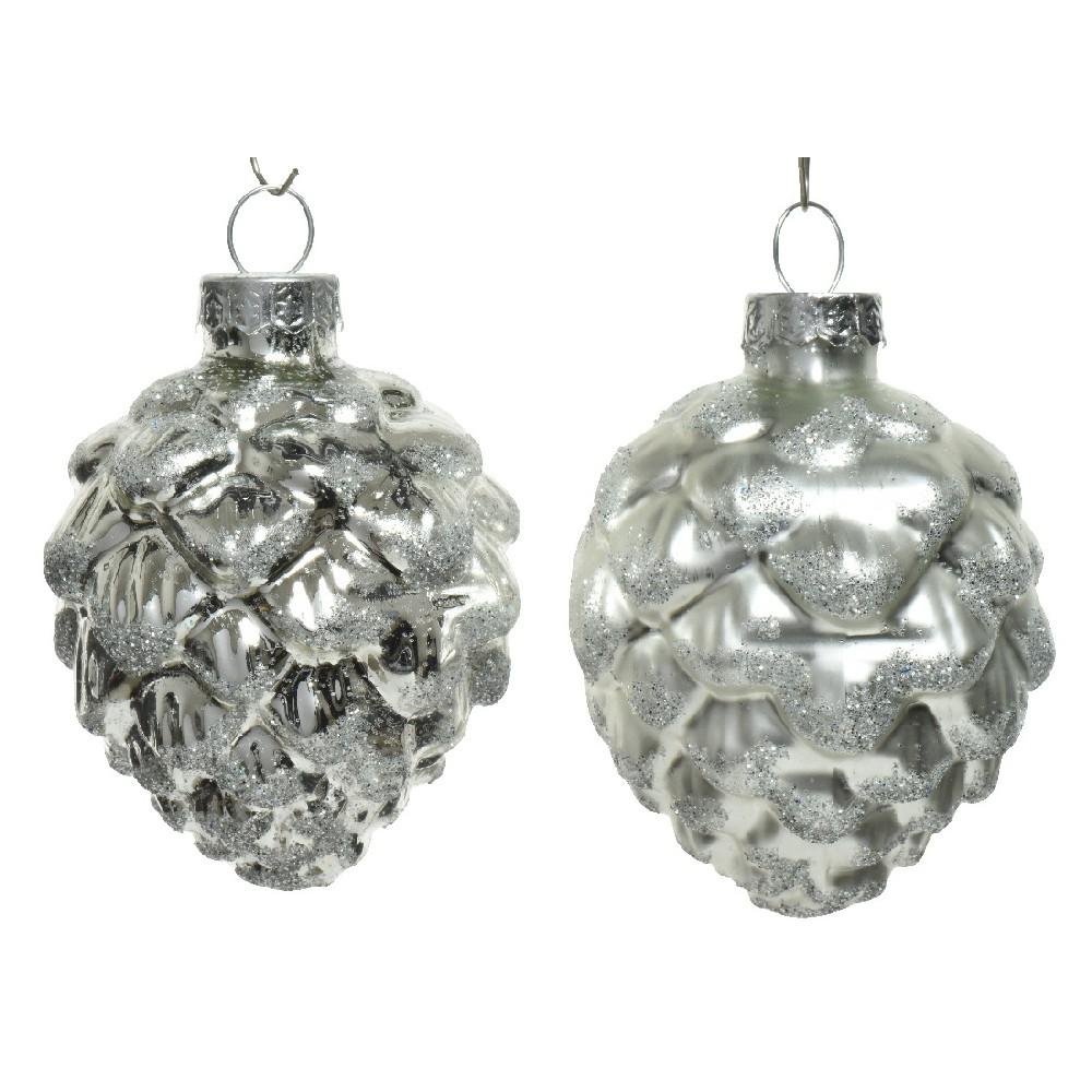 Dekorácia Šišky sklo strieborná s/6 7cm/pr.5 lesklá/matná trblietavá zmes