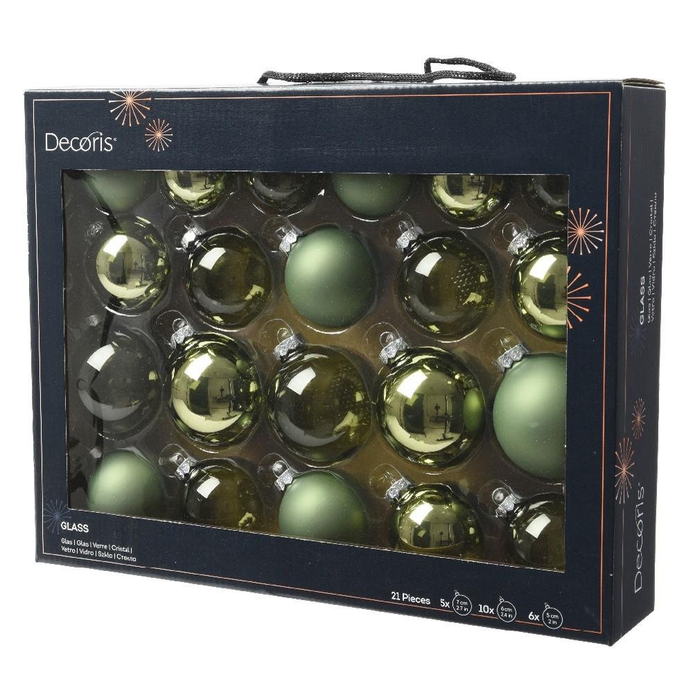 Dekorácia Guľa sklo zelená trans/lesklé/mraz. s/21 pr.5,6,7cm