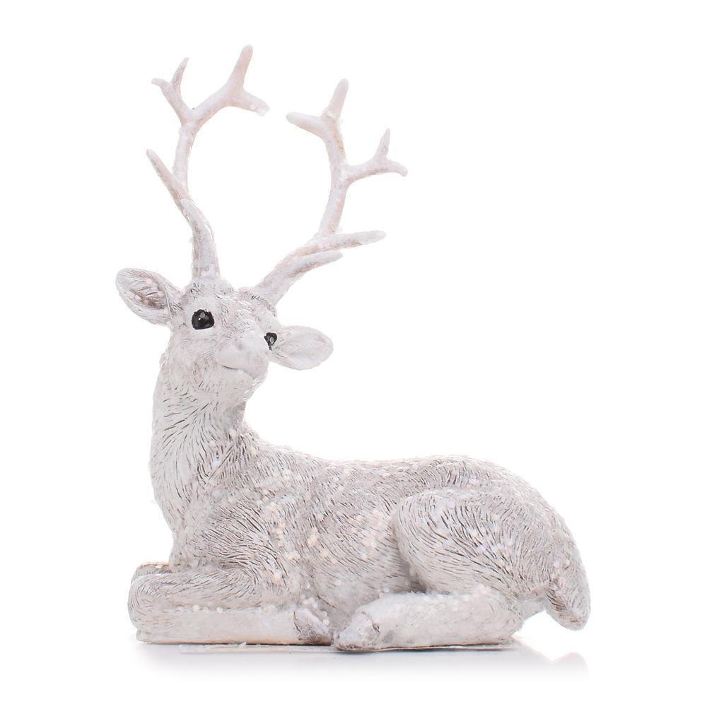Dekorácia Jeleň ležiacibiely gliter 10x5.x10.5cm