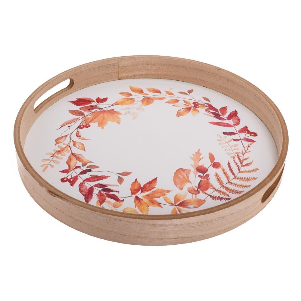 Dekorácia Podnos drev. veľký 35cm jesen. motív