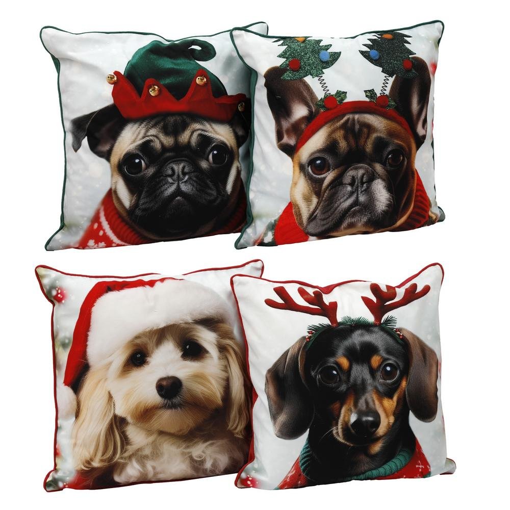 Dekorácia Vankúš s motívom psa v klobúku 45x45cm