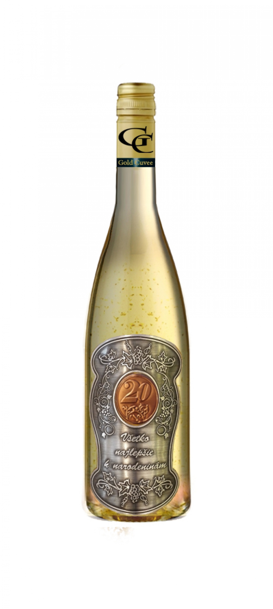 Zloženie: 97% Irsai Oliver - akostné odrodové víno biele polosuché, 23 karátové zlaté lupene - likér 3 gold.