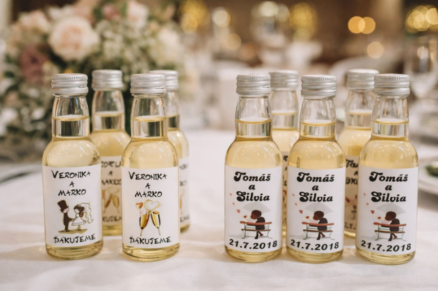 Svadobné mini fľaštičky s vlastnou grafikou, rôzne druhy alkoholu