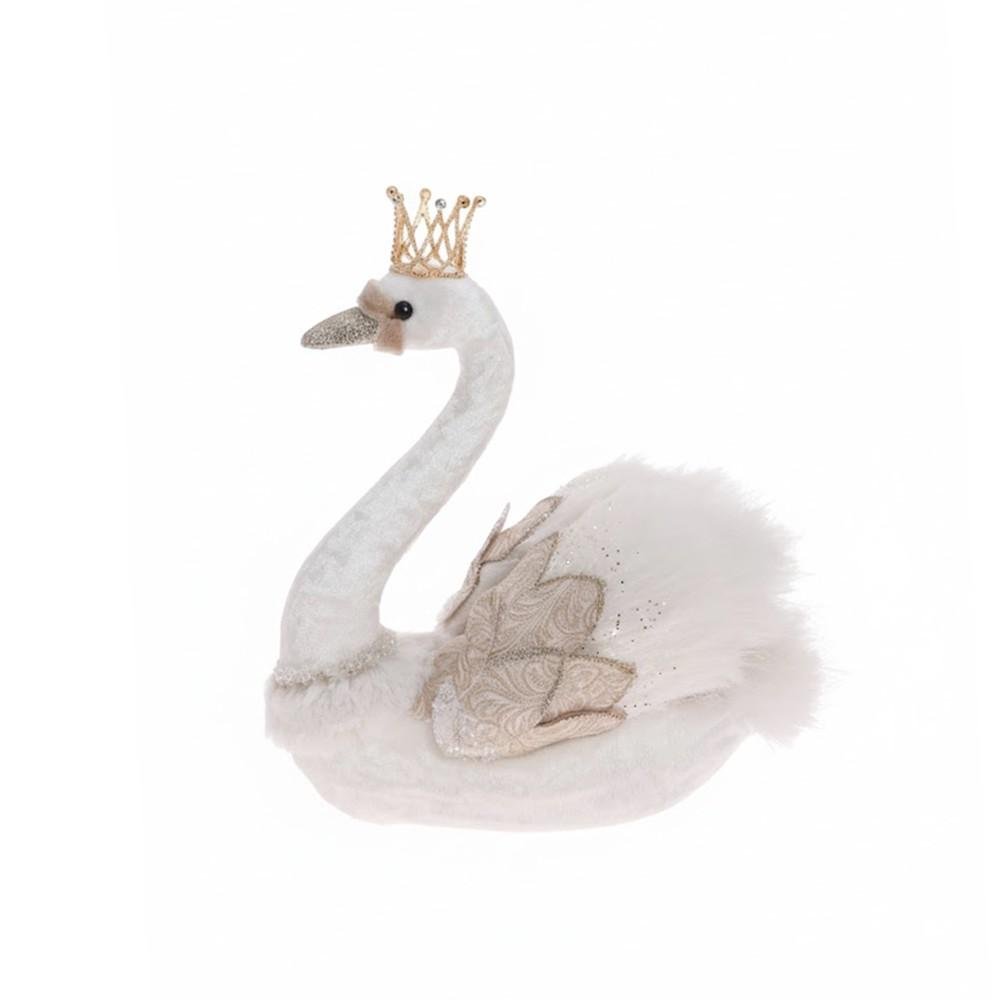 Dekorácia Labuť bie/béž textil 24*16*27cm