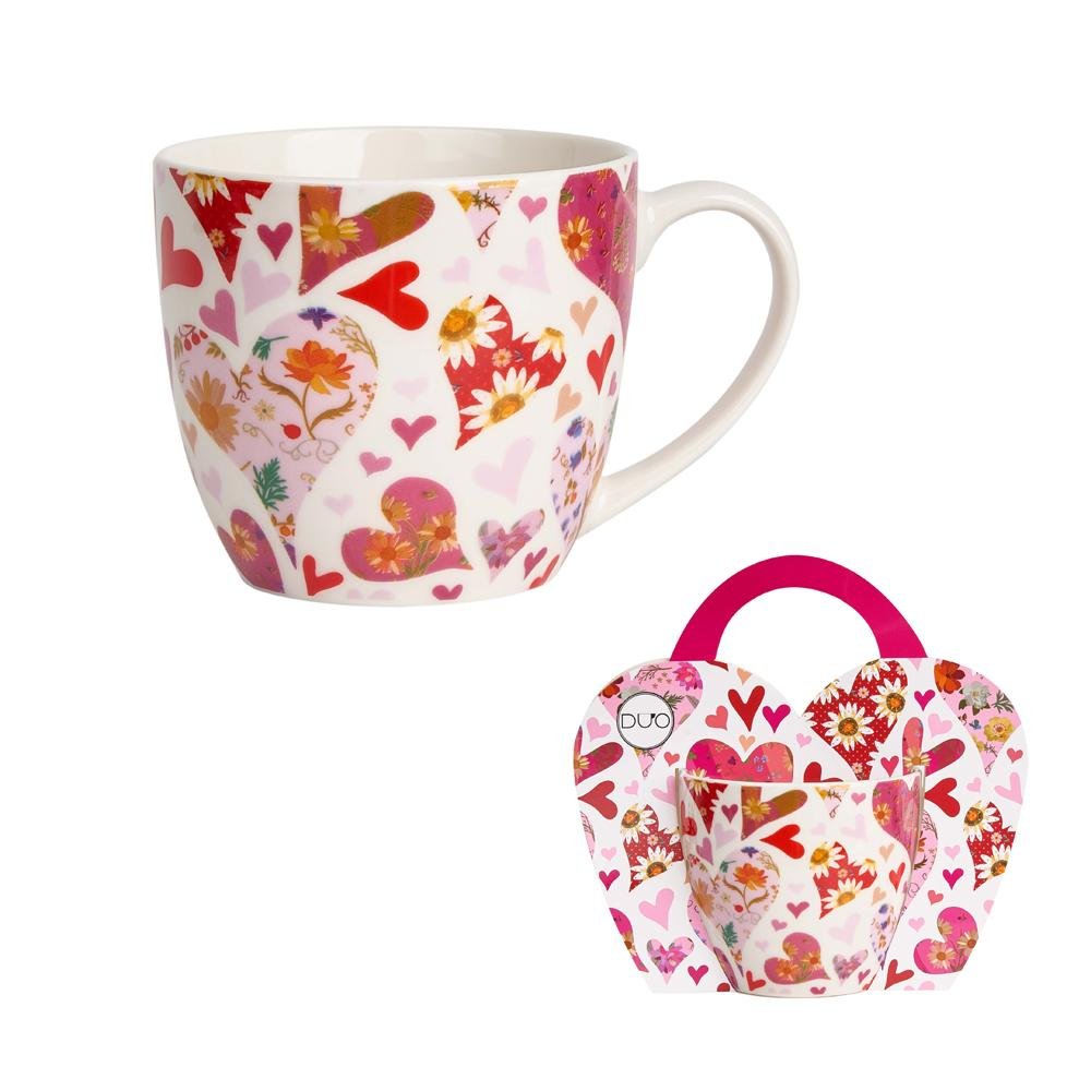Dekorácia Šálka 460ml ružové srdcia