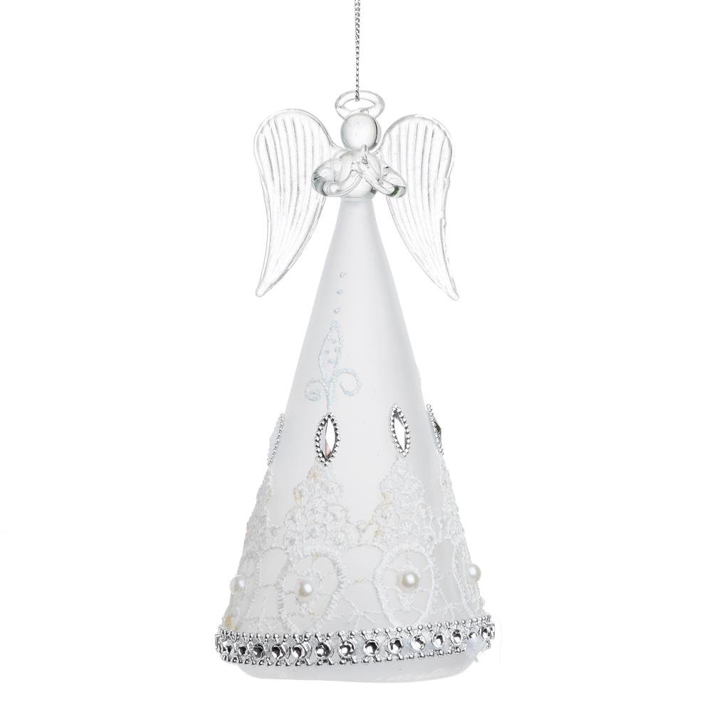 Dekorácia Vian. záves anjel biely led sklo 7*16cm