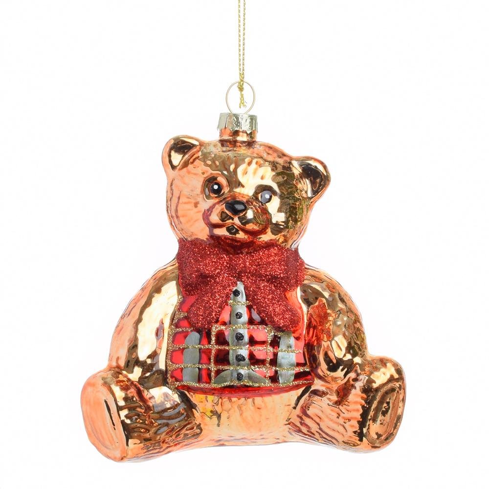 Dekorácia Vian. gulka- macko zla/čer sklo s/2 9,9*6,5*11cm