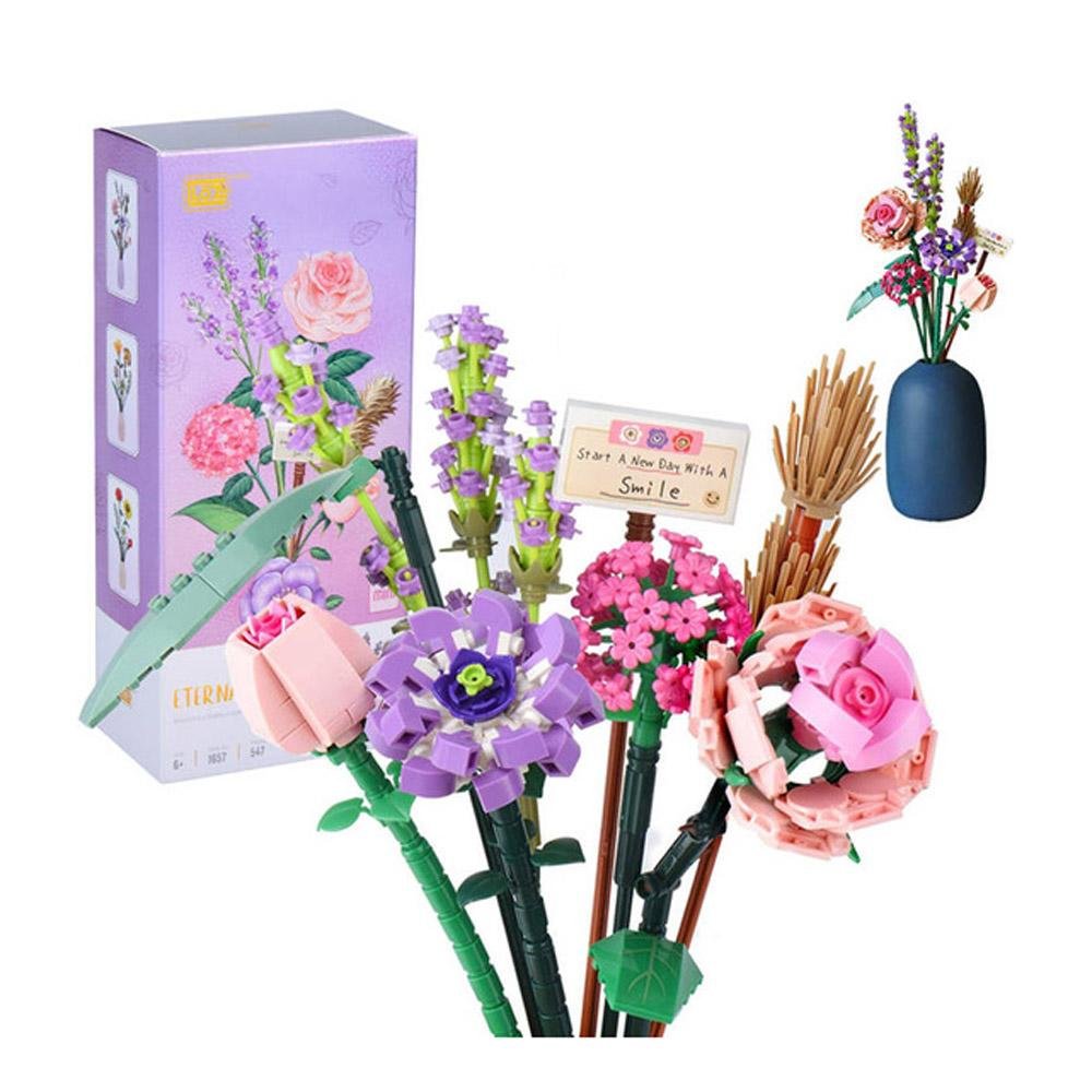 Dekorácia Kreatívne stavebné kocky kytica farebných kvetov 547 ks