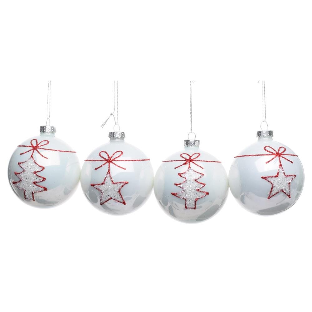 Dekorácia Vian. gule bie/čer strom/hviezda sklo mix/2f s/4 8cm