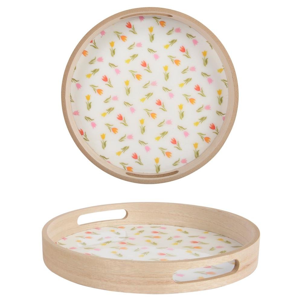 Dekorácia Tácka veľká mdf okrúhla smalt s potlač tulipánov fsc mix 70% v4/pr.