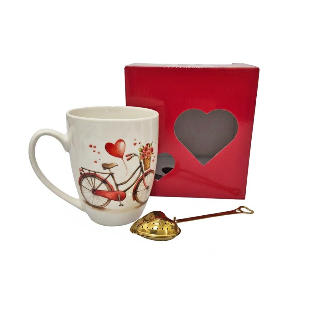 Dekorácia Šálka s čajítkom bicykel 360ml