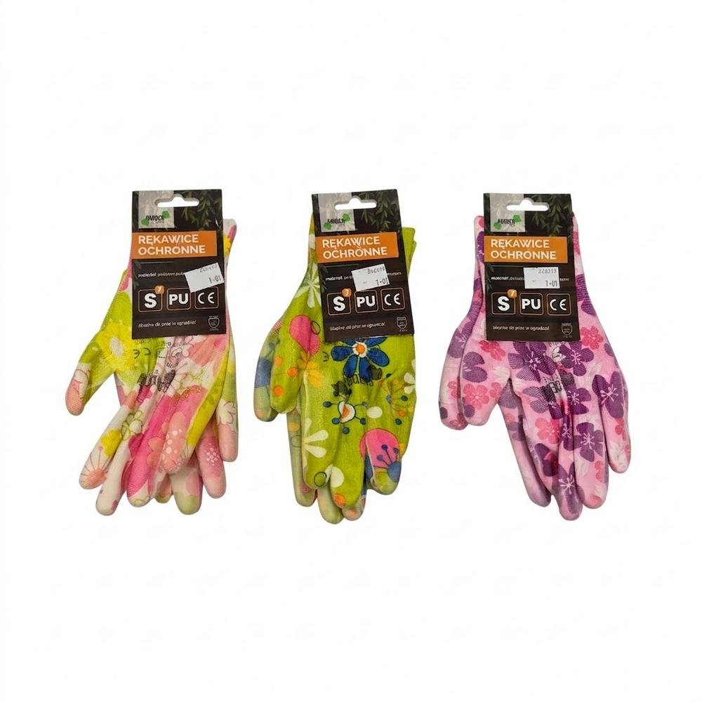 Dekorácia Rukavice ochranné “7” plet. vzor kvety z polyest pokryt polyuret *6935