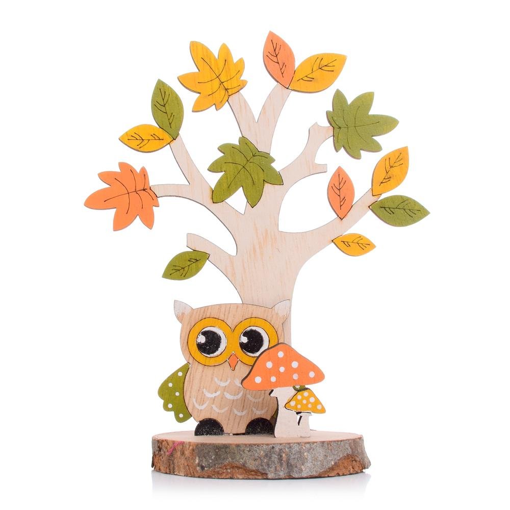Dekorácia Strom s lístim a sovou drevo 13*8.5*16.5cm