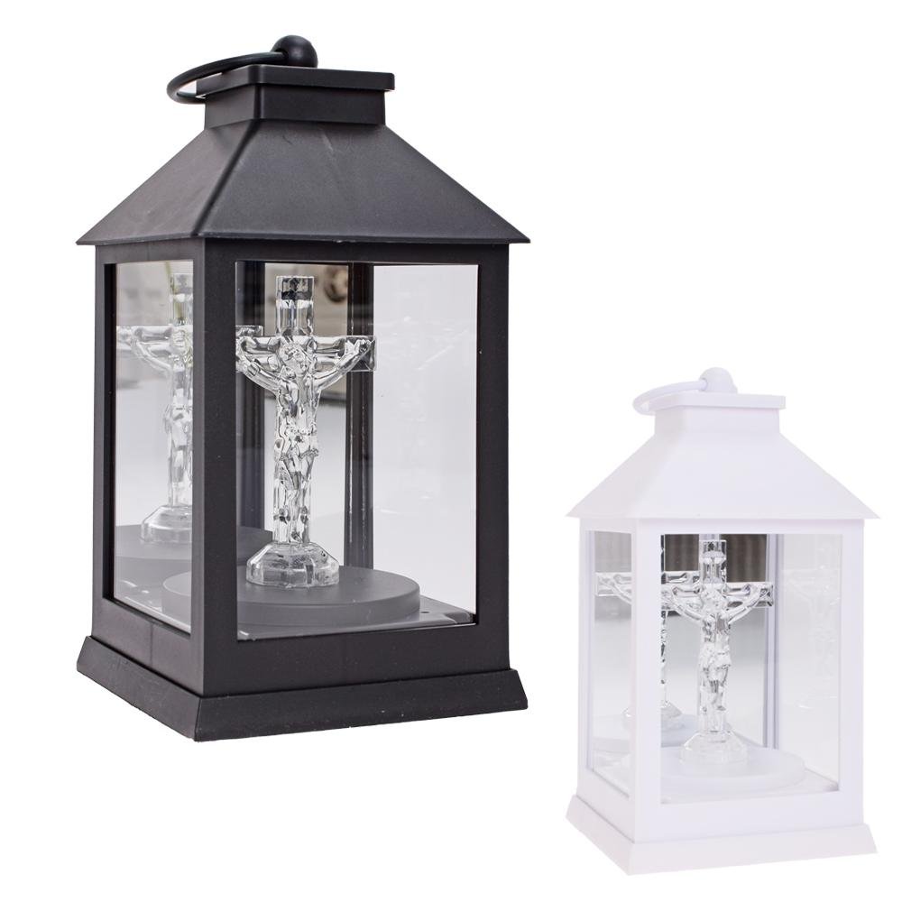 Dekorácia Led lucerna kríž biela,čierna la1+bat
