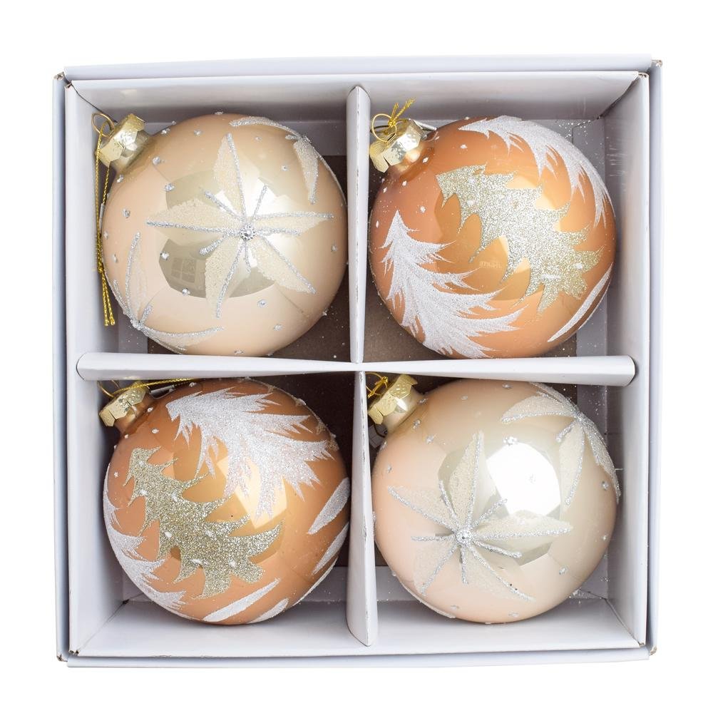 Dekorácia Vian. gule bie/ zla/žlt vzor sklo mix/2f s/4 10cm