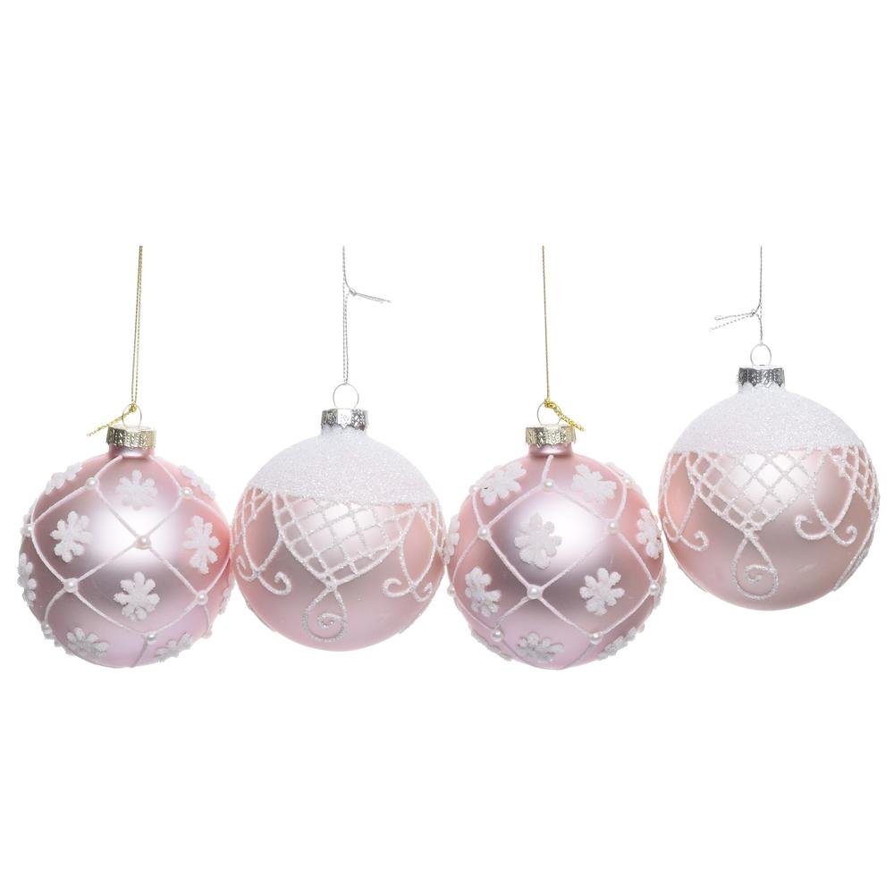 Dekorácia Vian. gule ruž/bie vzor sklo mix/2f s/4 8cm