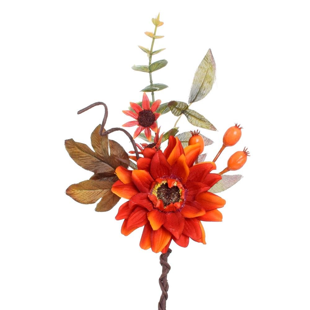 Dekorácia Kytica jesenná slnečnica šípky oran/červ 32 cm