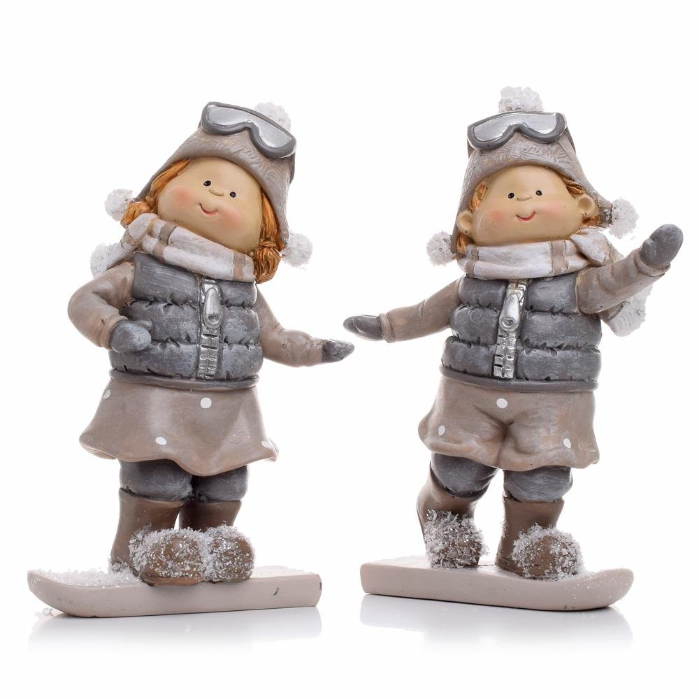 Dekorácia Deti na snowboarde mix/2 hne/siv poly 12*4.5*17