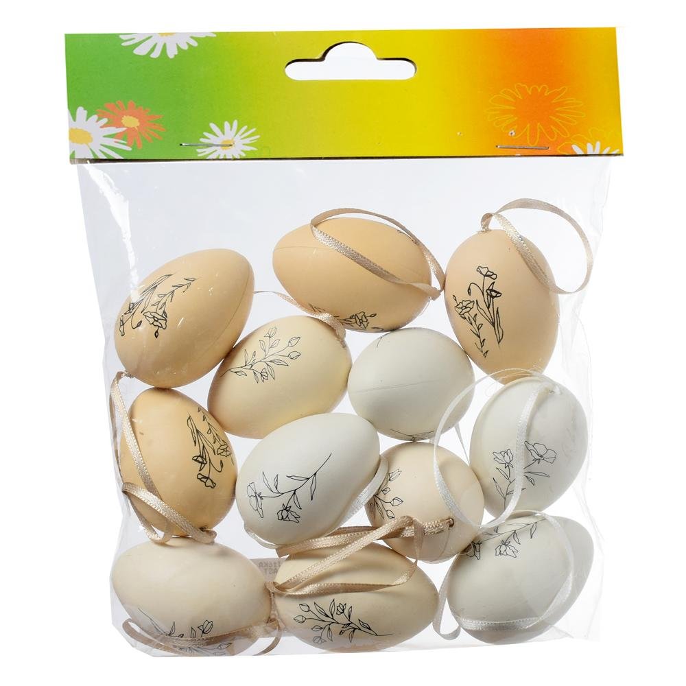 Dekorácia Vajíčka bie/nat s kvet. vzorom plast s/12 4*4*6cm