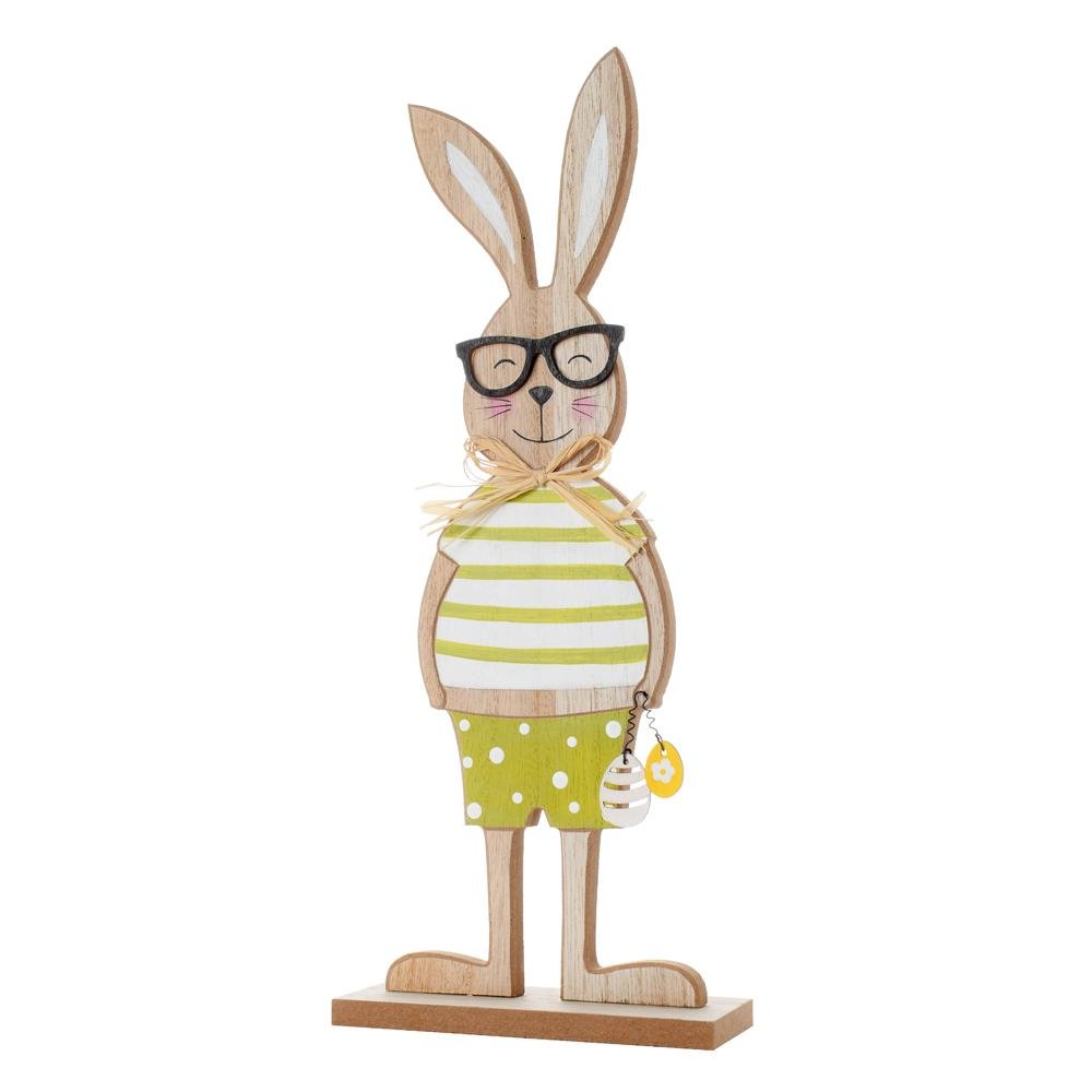 Dekorácia Zajac s okuliarmi nat/zel/bie drevo 13,5*5*34cm
