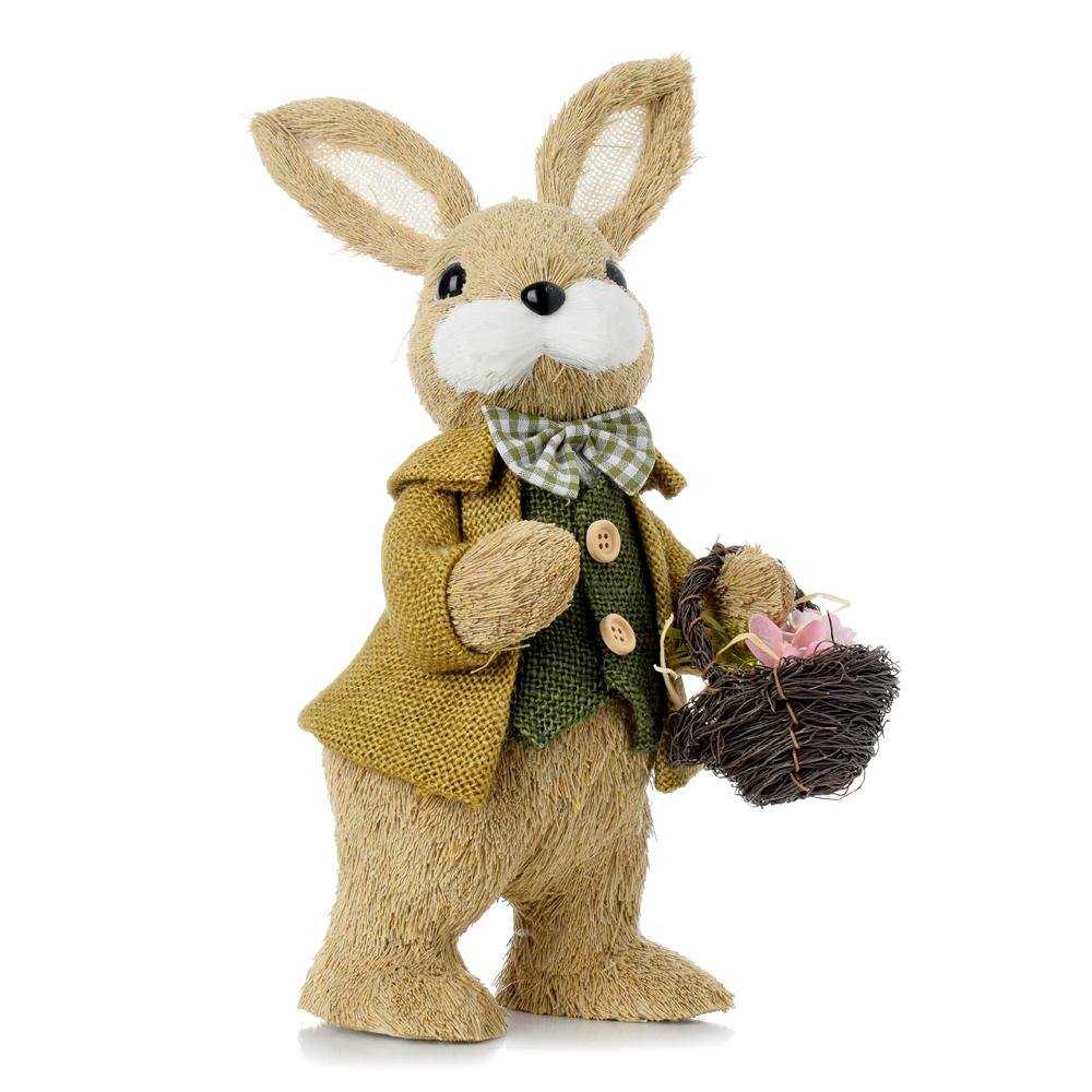 Dekorácia Zajac stojaci zel/žlt oblečenie košík s kvetmi, priadza 14*18*32cm