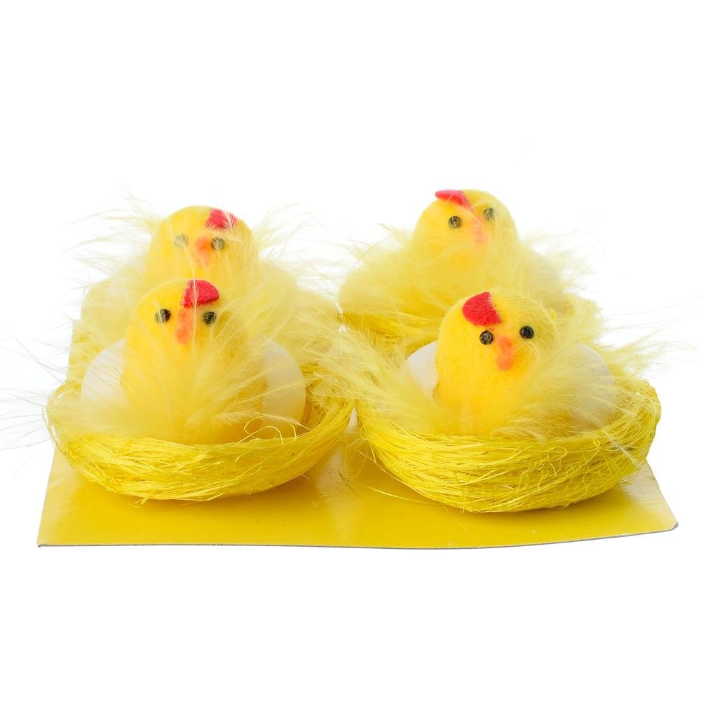 Dekorácia Kuriatka žlté v hniezde so škrupinkou s/4 filc/sisal 5,5cm