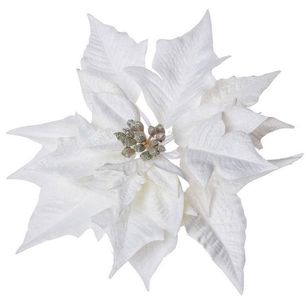 Dekorácia Poinsettia krém.zlatá klip 20cm super cena