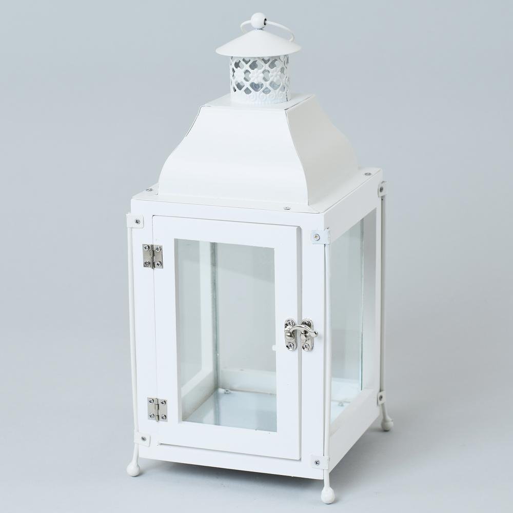 Dekorácia Lampáš drevo/kov+sklo biely 14,5x14,5x32,5 cm