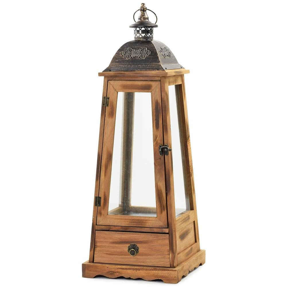 Dekorácia 24fl/s lampáš+šuflík drev/kov “l” 24,5x24,5x65,5 cm