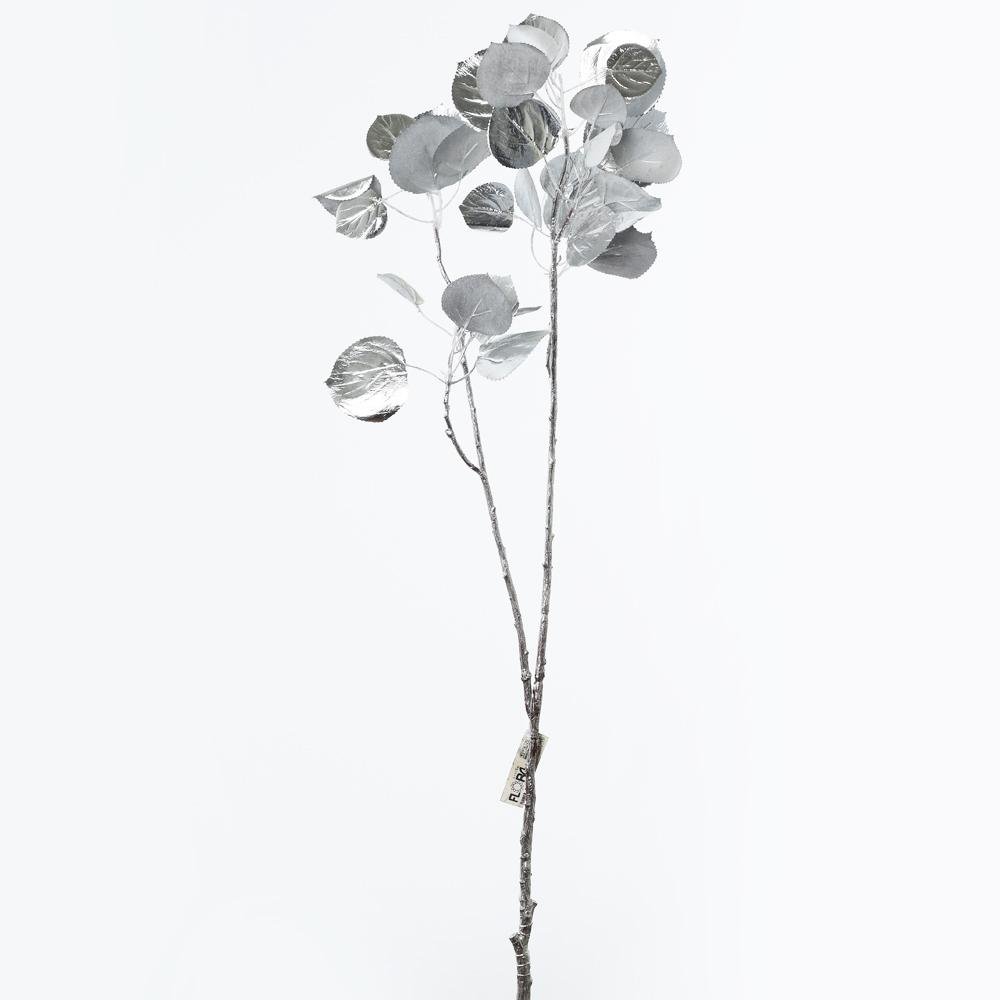 Dekorácia Konár listy strieborný 80cm