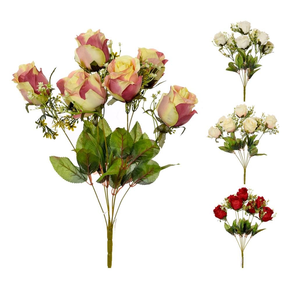 Dekorácia Kytica ruža mix4f 50cm