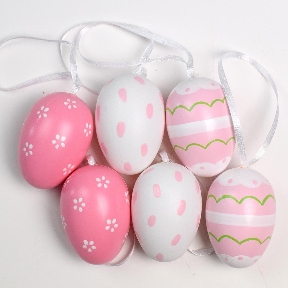 Dekorácia Záves vajce plast s/6 6cm ružová/biela