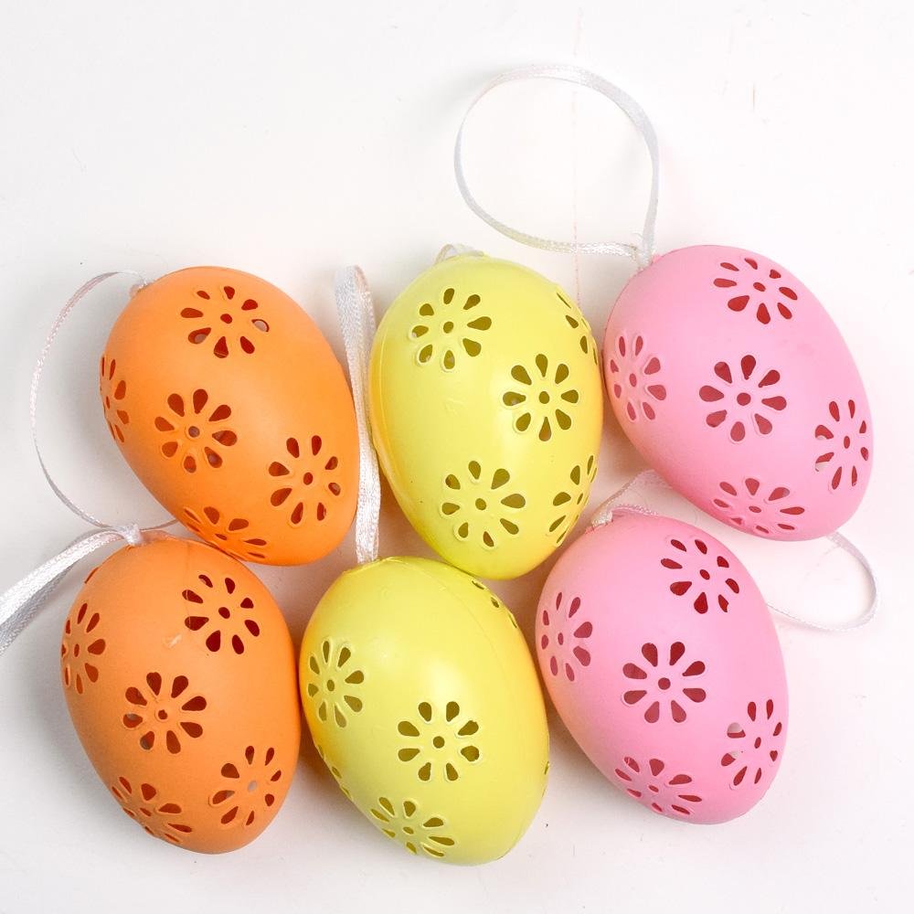 Dekorácia Vajíčka vzor kvet farebné s/6 6cm