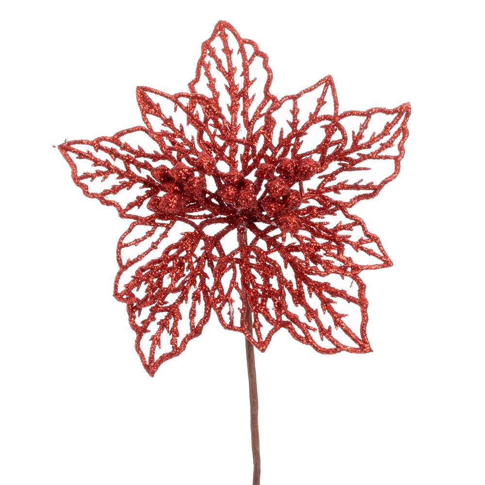 Dekorácia Vian. ruža/ poinsetia červená gliter 12cm