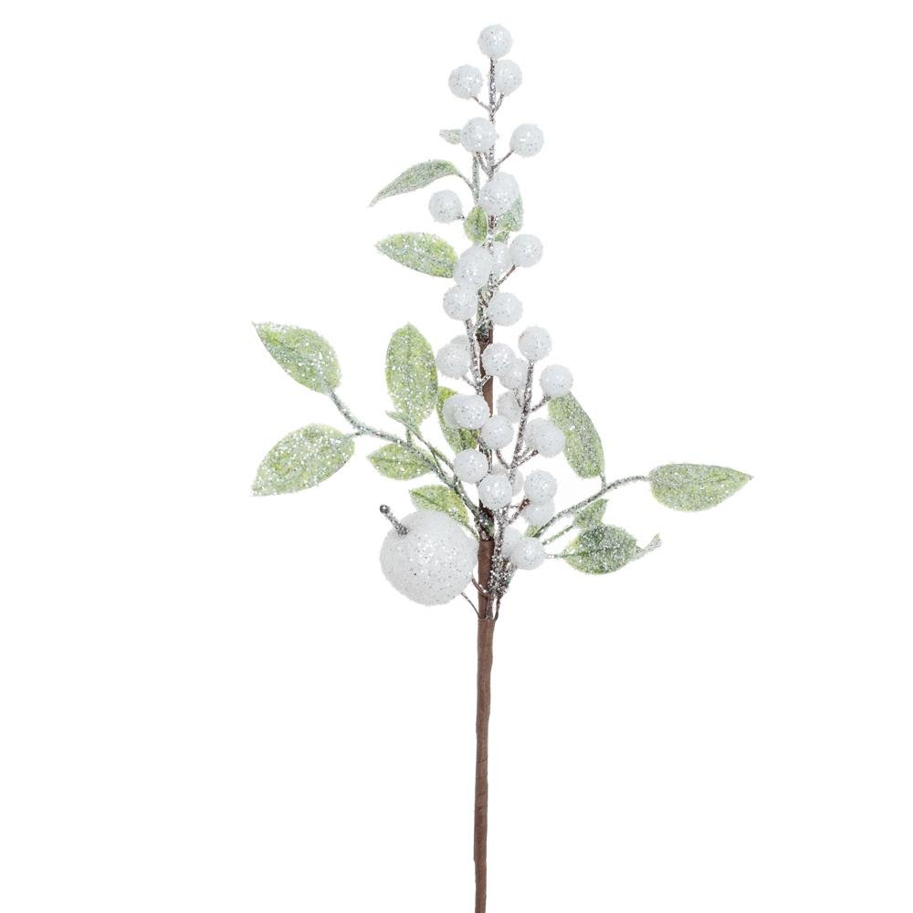 Dekorácia Vian. vetv. zeleň, bie. jablko, gulky, gliter 44cm