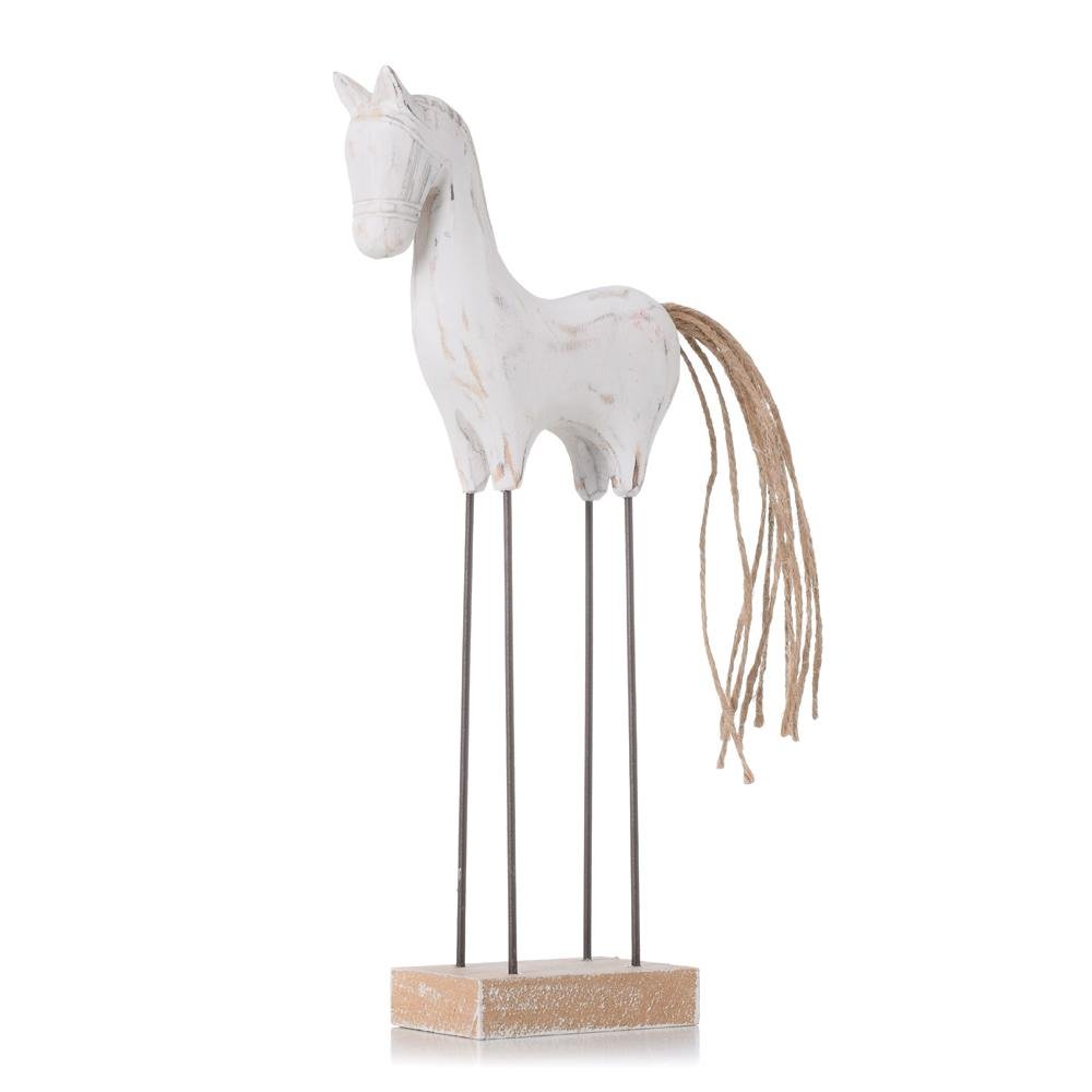 Dekorácia Koník malý na podst., kov nohy, bie/nat drevo 25,5*10*4,5cm