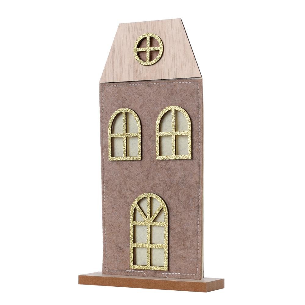Dekorácia Domček nat/hne/zla drevo/filc 13,5*4*22cm