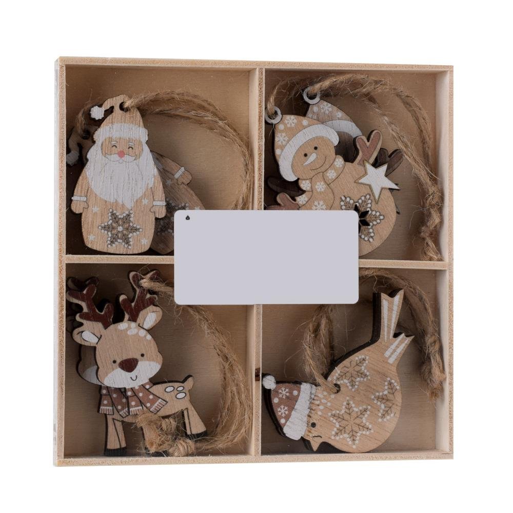 Dekorácia Záves snehuliak/santa/sob/vták drevo natur s8