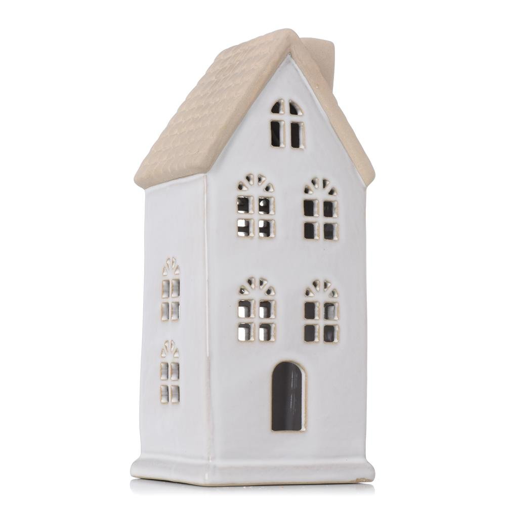 Domček bie/béž led porcelán 9,4*7,5*20,2cm
