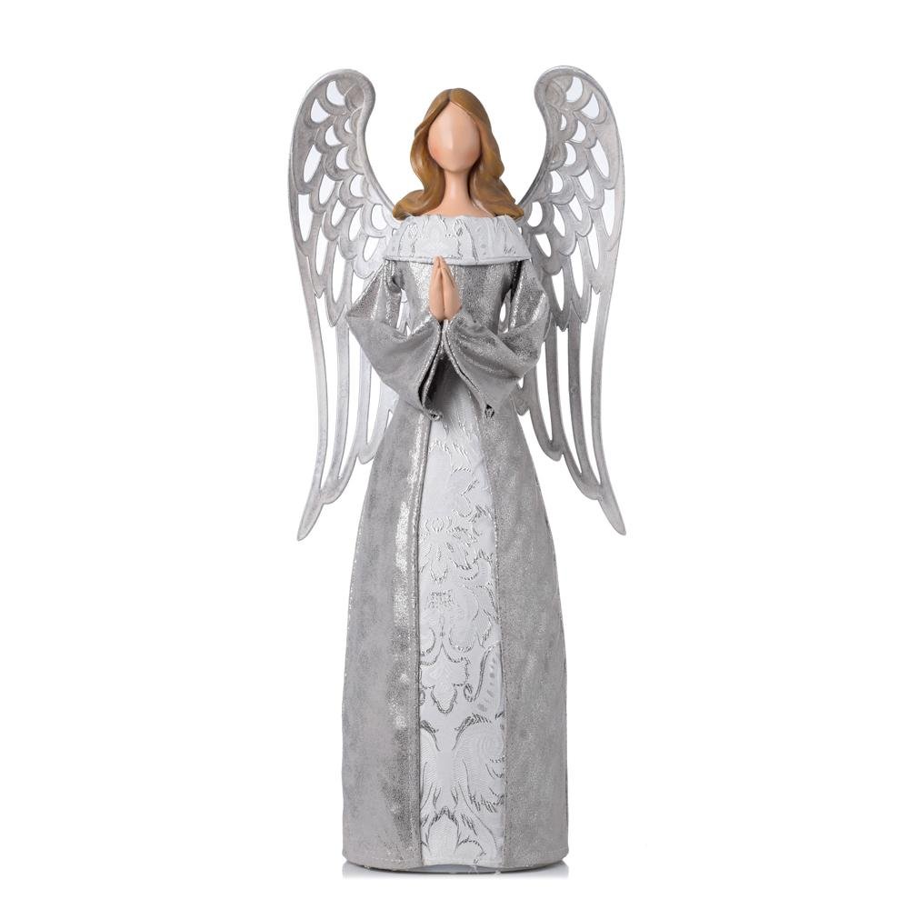 Anjel strieborný/bie led 25x15x55,5cm