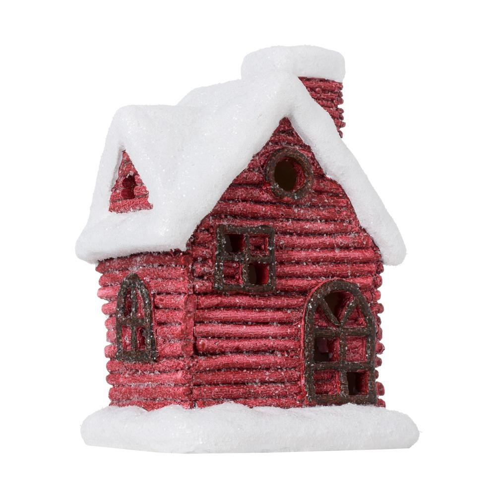 Domček červený so snehom glit. led poly 13,2*10*17,5cm