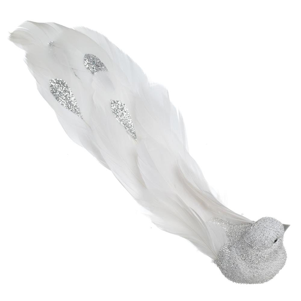Dekorácia Vtáčik na štipci str/bie gliter perie 22*4,5*5cm