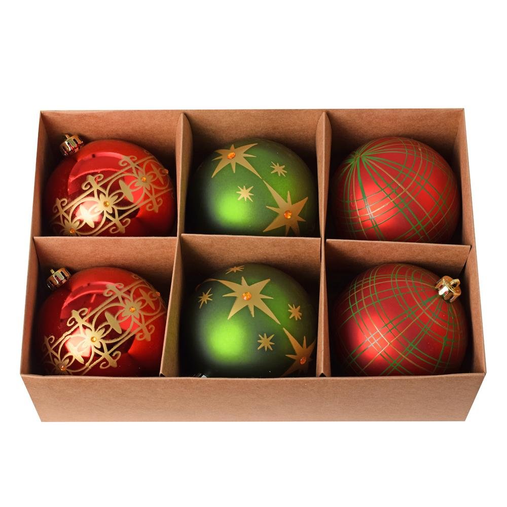 Guľa plast. čer/zel/zla lesk/mat s/6 10cm